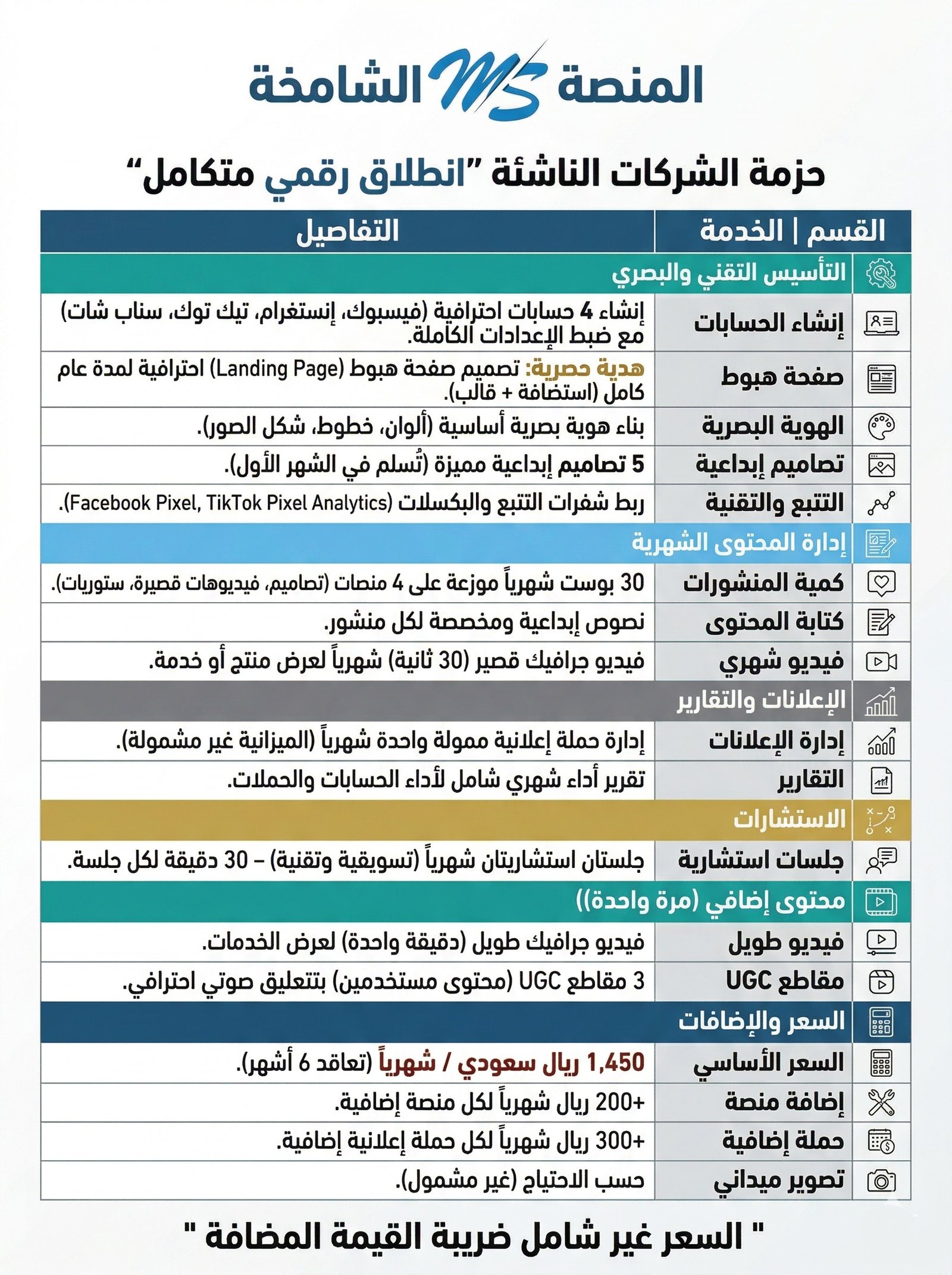 الحملات الإعلانية: إدارة إعلانات (Meta, TikTok, Google) باستهداف دقيق وتحسين للتكلفة.